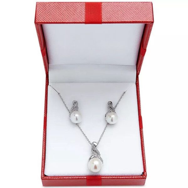 Cultured Freshwater Pearl (8 & 9mm) and Diamond Accent Pendant Necklace and Earrings Set in Sterling Silver or 14k Gold Over Silver